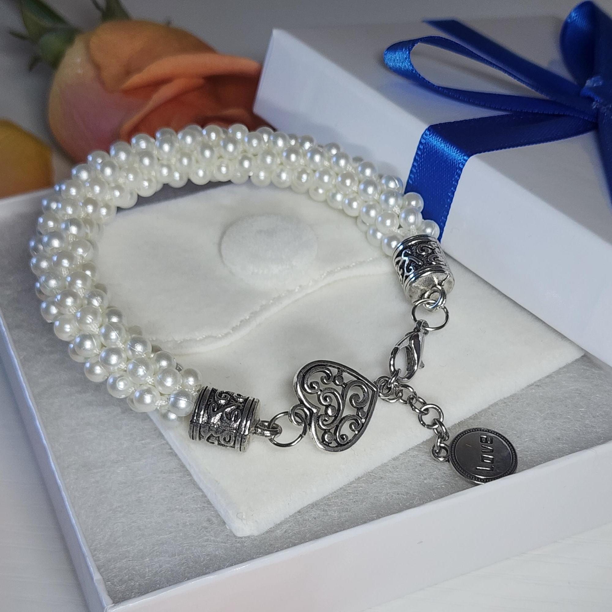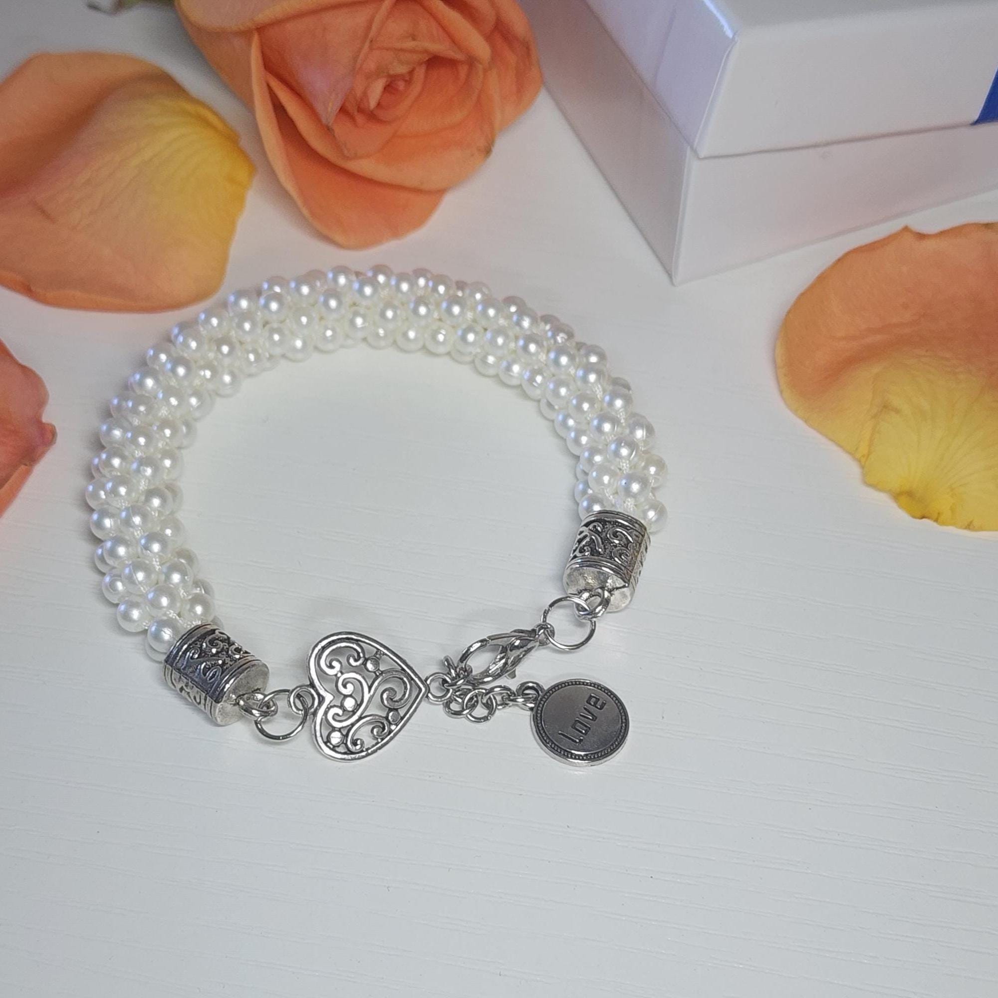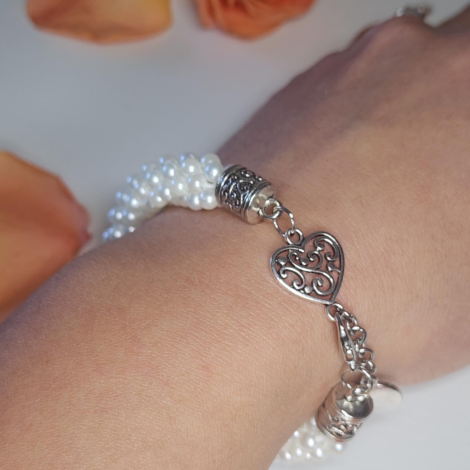 Searching for a special accessory that adds a touch of elegance to any look? This woven faux pearl bracelet is just what you need to elevate your style. Handcrafted with over 272 pearls and detailed silver accents, it’s the perfect way to express your love — whether you’re treating yourself or surprising someone special.