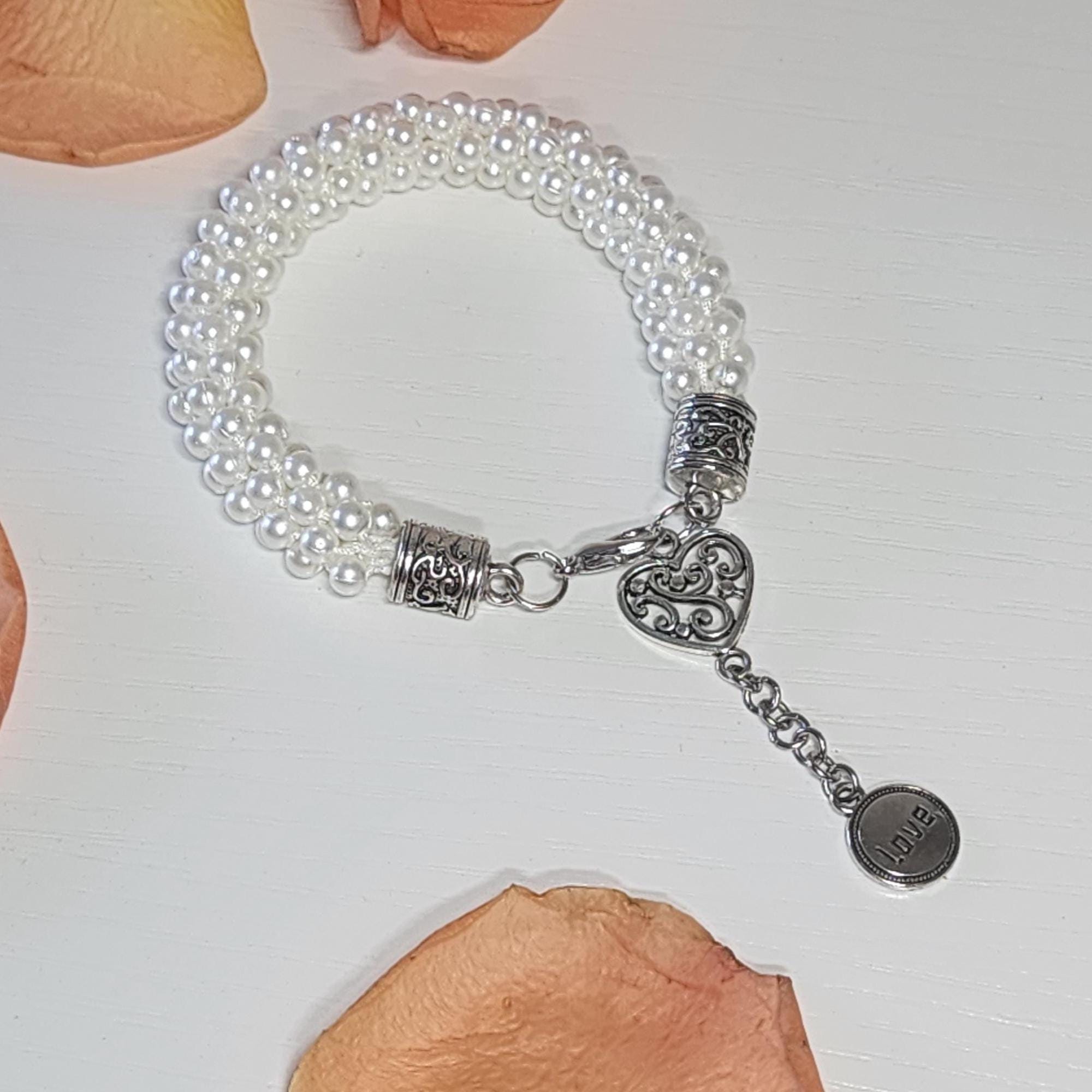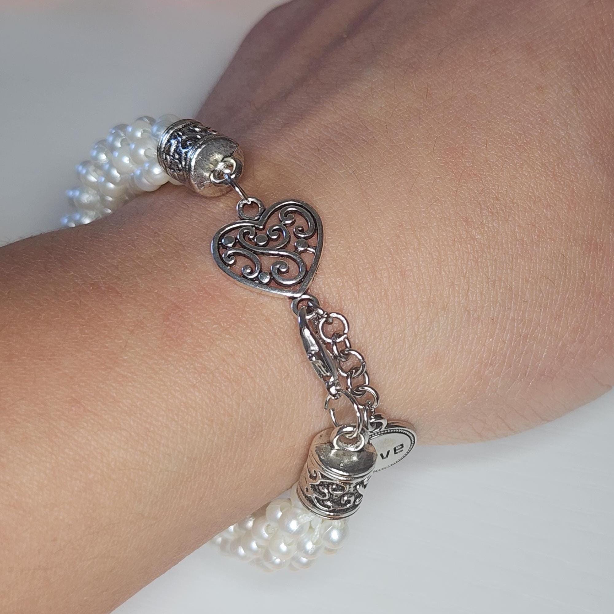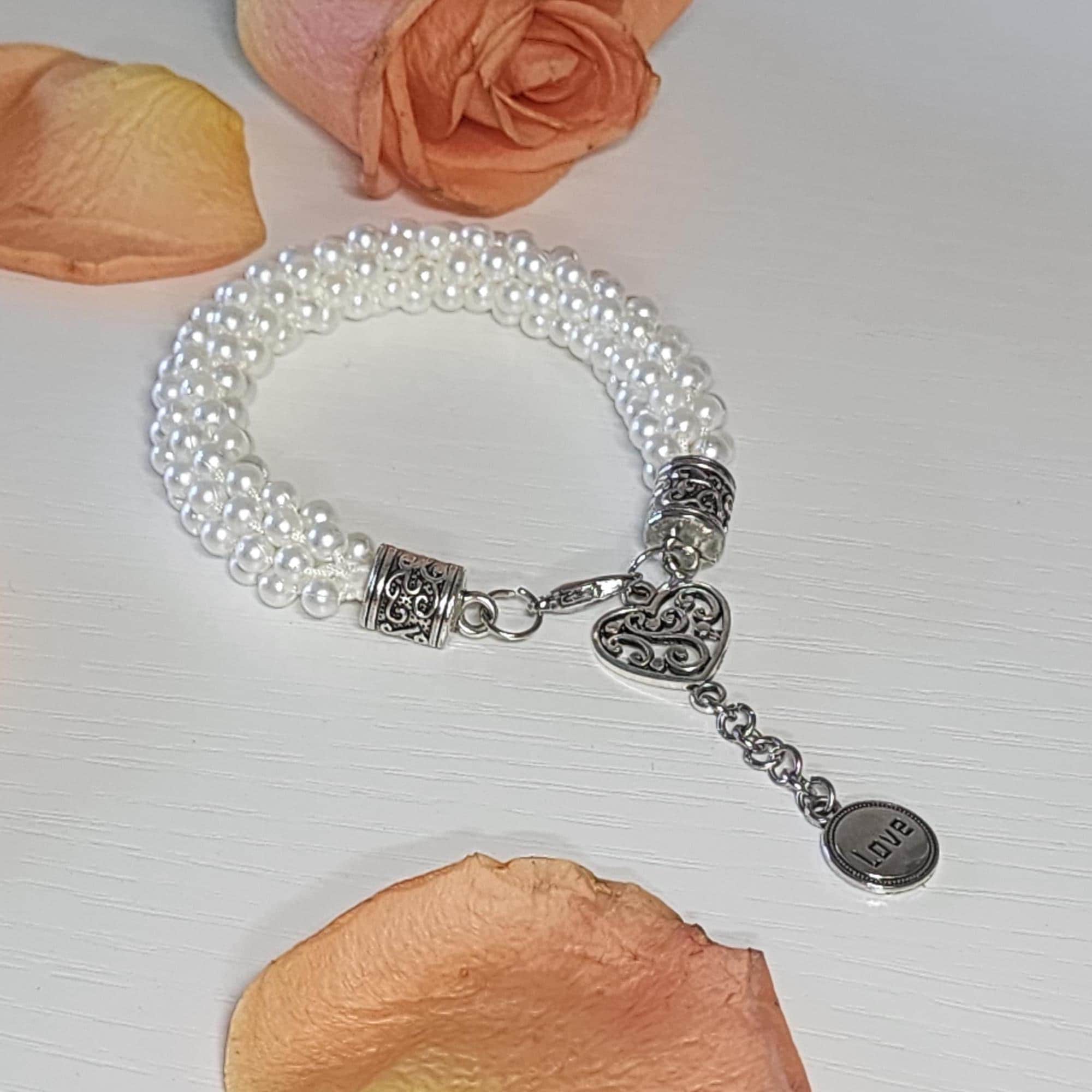 Searching for a special accessory that adds a touch of elegance to any look? This woven faux pearl bracelet is just what you need to elevate your style. Handcrafted with over 272 pearls and detailed silver accents, it’s the perfect way to express your love — whether you’re treating yourself or surprising someone special.