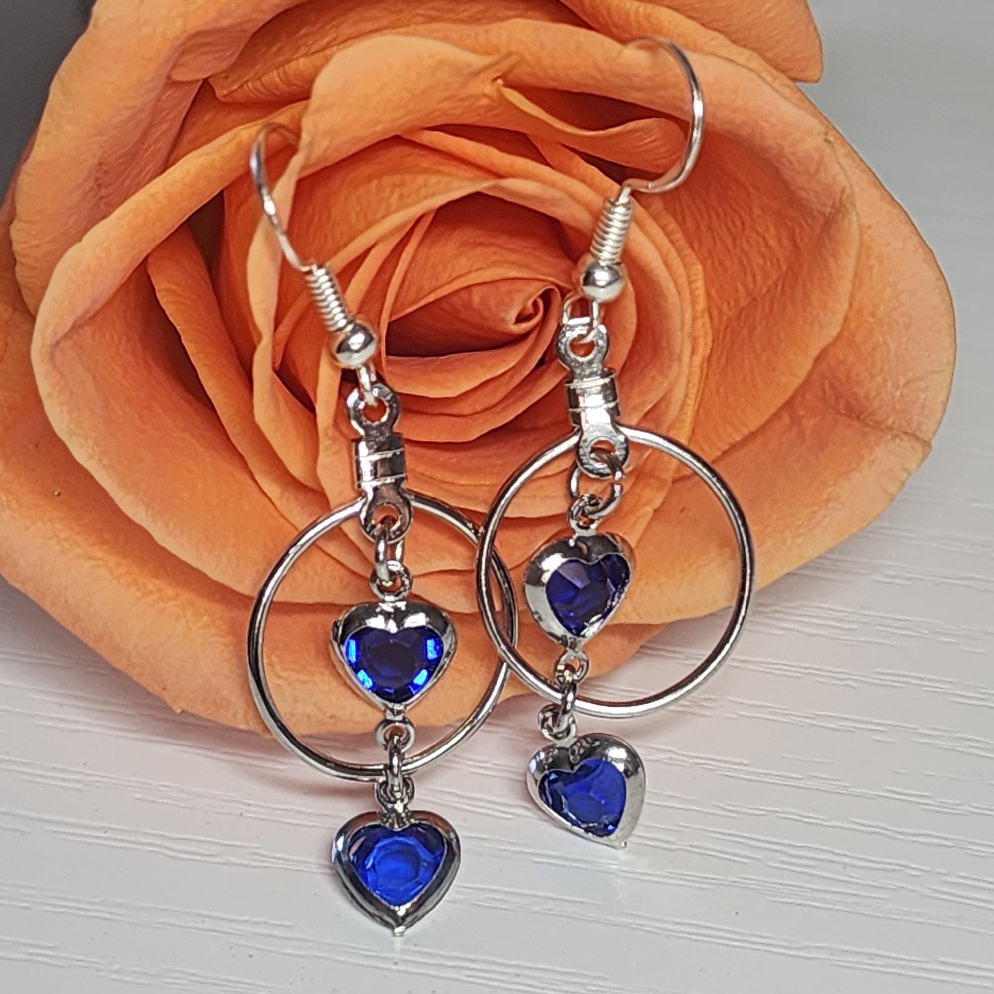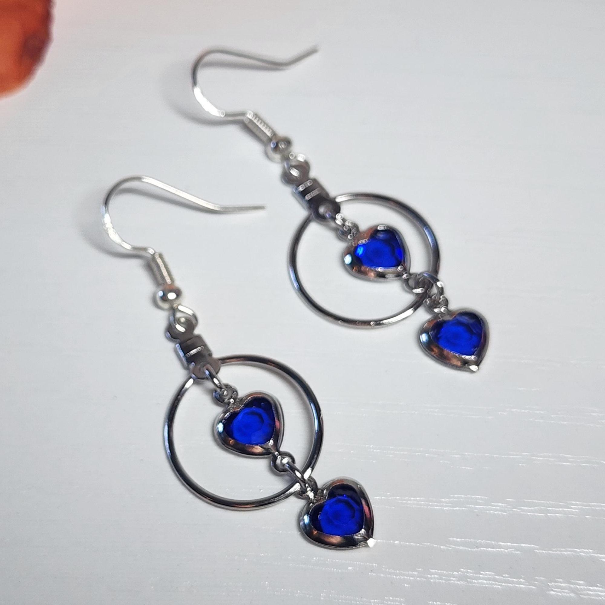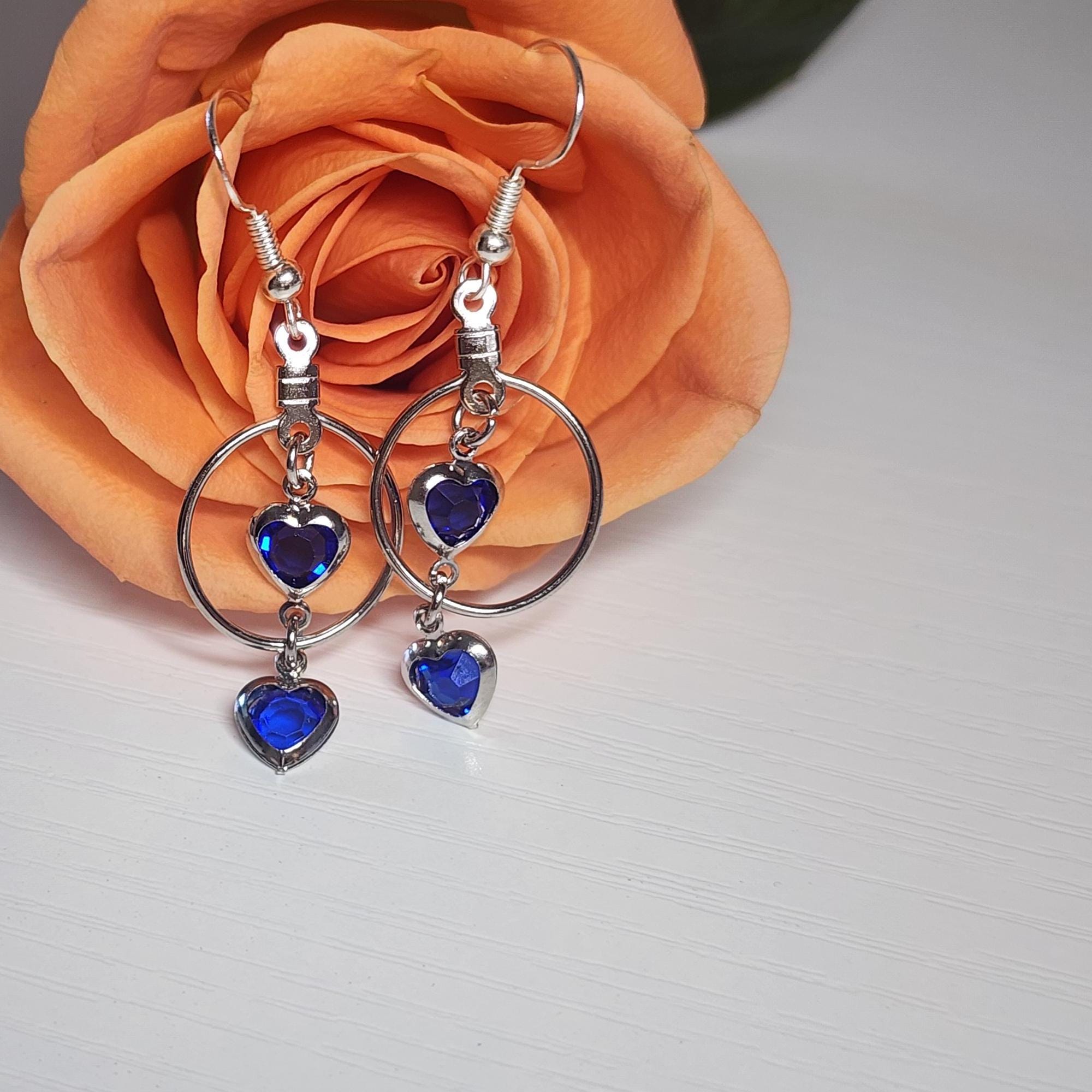 Hey there! Looking for earrings that sparkle with elegance and a pop of color? These Heart Crystal Drop Earrings are the perfect mix of modern minimalism and romantic charm. Each earring features two faceted blue heart crystals framed in polished silver-tone metal — one resting delicately inside a hoop and another dangling gracefully below it. The result? A design that moves beautifully with every turn of your head and catches the light just right.