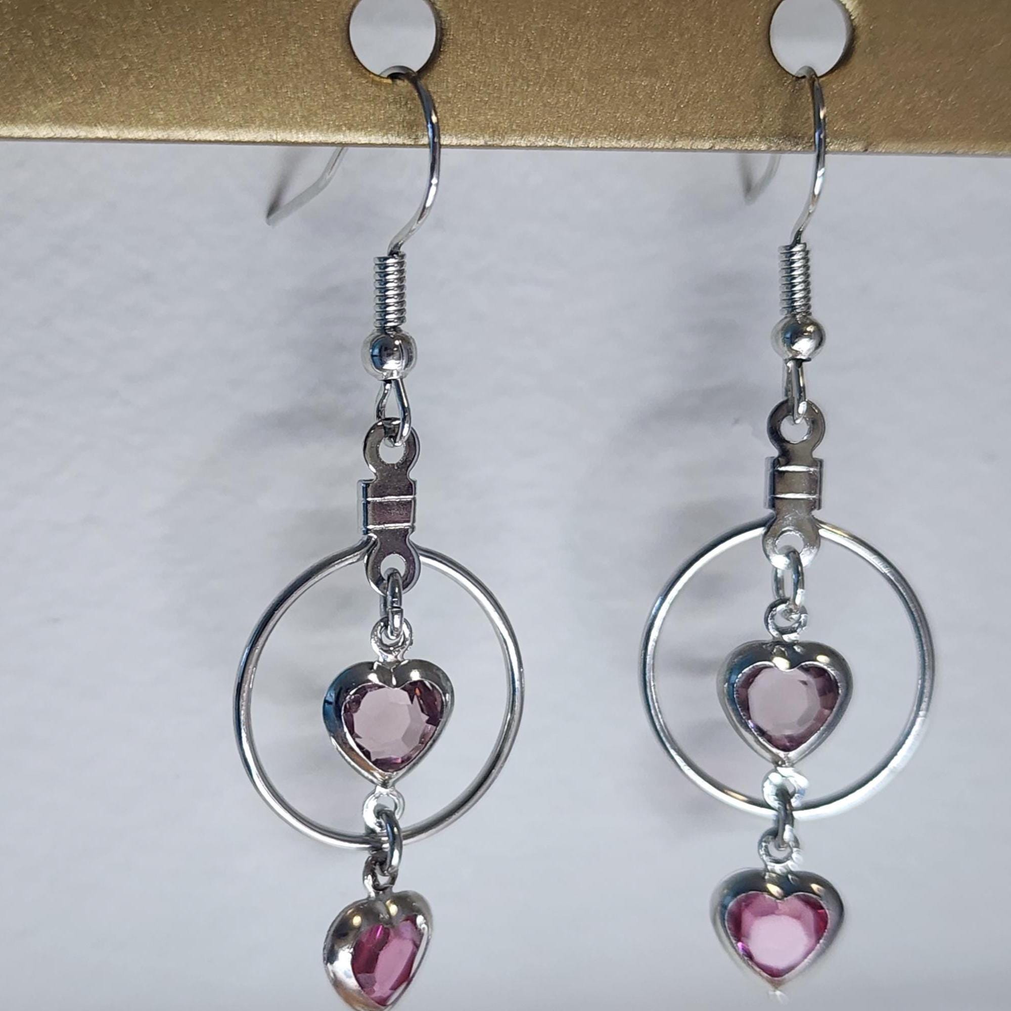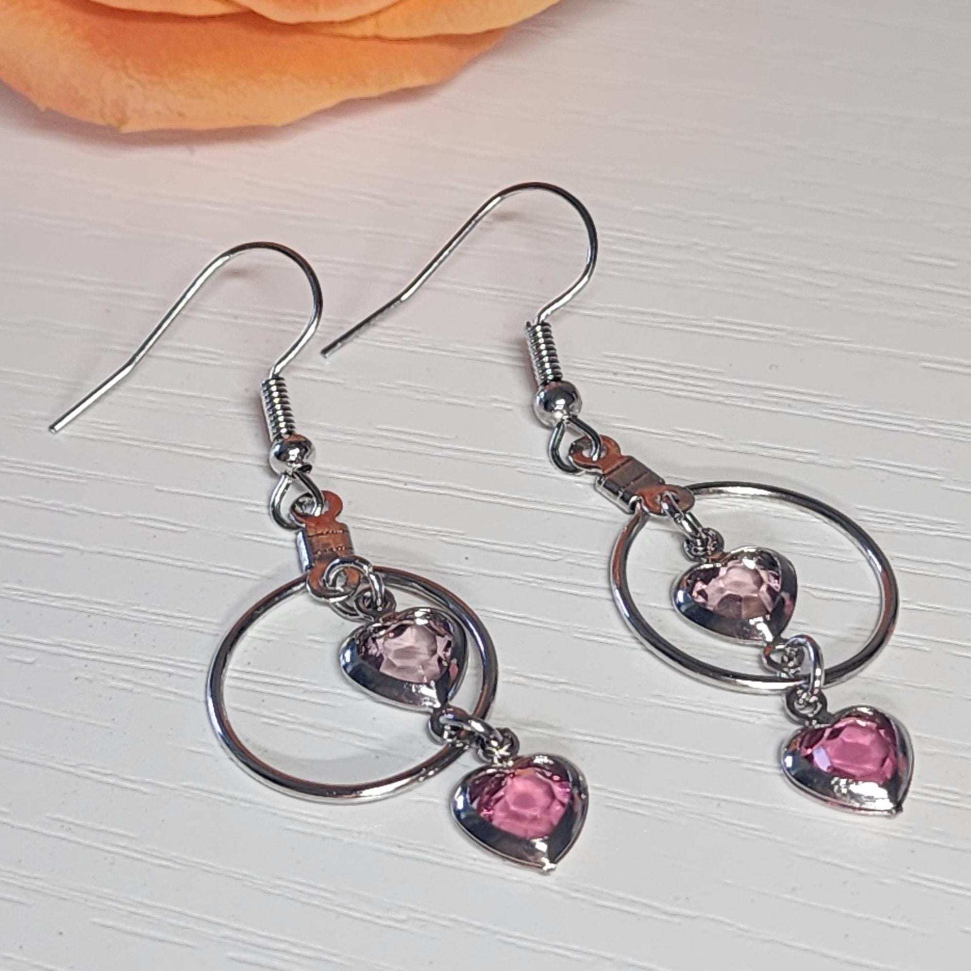 • Materials: Silver-tone metal, faceted pink crystal hearts